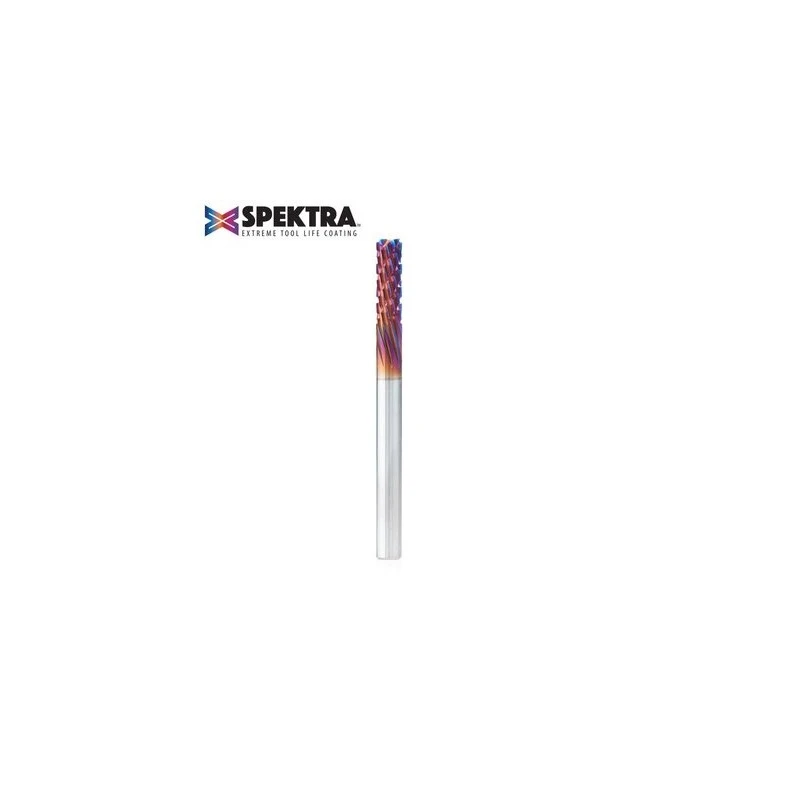 Frezy Amana SpektraTM posiadają nanokompozytową powłokę nACo® o ekstremalnej nanotwardości i odporności na wysoką temperaturę. Dzięki olśniewającym, wyróżniającym się kolorom, nACo zapewnia dodatkowe ulepszenia w czterech krytycznych aspektach frezowania. Powłoka nACo to mikrocienka powłoka ceramiczna, która umożliwia krawędzi tnącej narzędzia zachowanie kluczowej ostrości i smarowności. Zapewnia to długowieczność i zapewnia najwyższą jakość cięcia. Powłoka zapobiega wysokiemu nagrzewaniu i utlenianiu, co ma negatywny wpływ na wydajność narzędzia skrawającego. Wielokolorowe odcienie, choć atrakcyjne, znikną po użyciu, a powłoka pozostanie w pełni skuteczna. NACO oferuje około 4500 Vickersów, zapewniających imponującą twardość masy w obszarach skrawania narzędzia, co daje wzrost do 2,5 razy w porównaniu do frezów walcowo-czołowych niepowlekanych. Uwaga: Blased niebieski kolor rozprasza się natychmiast po użyciu. Powłoka nanokompozytowa nACo® nie ściera się.
