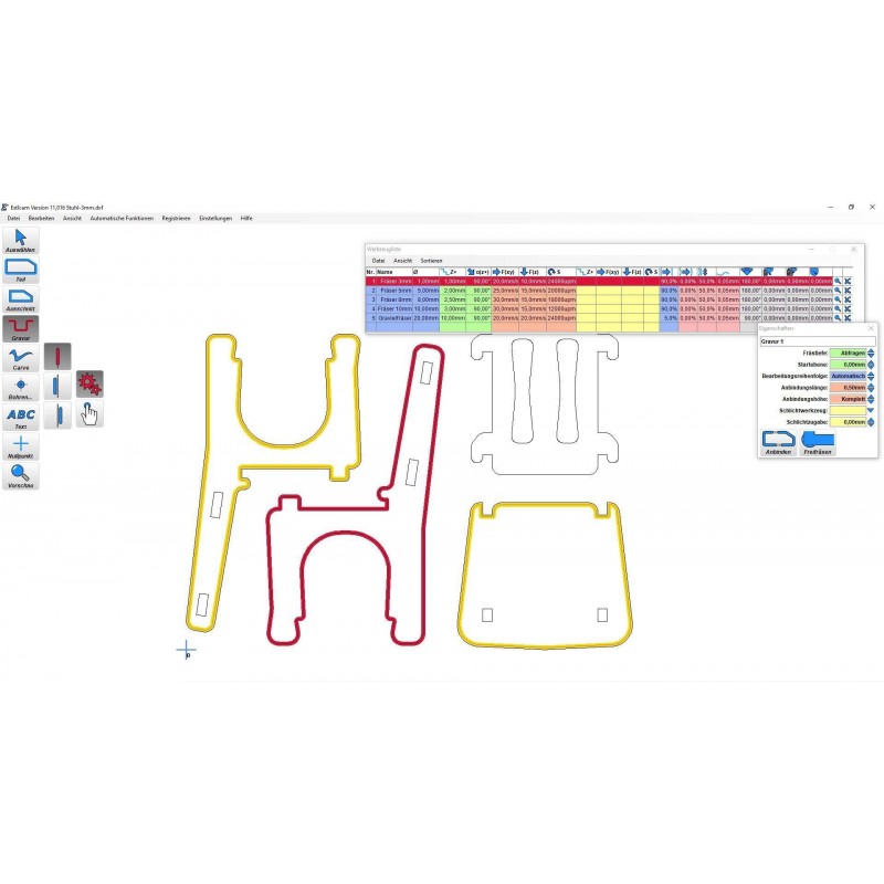 Estlcam to intuicyjne oprogramowanie CAM, które jest optymalnie dostosowane dla początkujących. Możesz łatwo zaimportować plik rysunku w jednym z obsługiwanych formatów (.dxf, .svg, .stl, .png, .gif lub .jpg) i przekonwertować go na kod G czytelny dla maszyny. Dzięki funkcji podglądu można wstępnie obliczyć i sprawdzić odległości przesuwu, procesy frezowania lub czas frezowania.