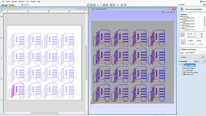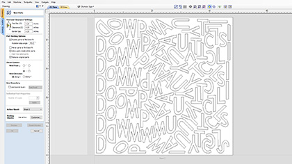 True Shape Nesting pozwala na automatyczne rozmieszczenie i dopasowanie kształtów wektorowych i komponentów do rozmiaru materiału lub obszaru definiowanego przez użytkownika, aby uzyskać optymalne wykorzystanie materiału i minimalne straty. Part Nesting jest idealny dla producentów znaków i szaf, którzy muszą zminimalizować straty materiału i wyciąć jak najwięcej części – liter i drzwi szafy / paneli – jak to możliwe z materiałów arkuszowych.