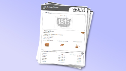 Polecenie create set-up job sheet pozwala na stworzenie arkusza podsumowującego, który wyszczególnia wszystkie ważne informacje, które będą potrzebne w maszynie CNC, kiedy przyjdzie uruchomić ścieżki narzędzia. Może to być używane jako odniesienie, aby upewnić się, że ustawienia są prawidłowe, załadowano prawidłowe narzędzie itp. Może być również używany do archiwizacji ze starą pracę jako plik szybkiego odniesienia, aby zobaczyć, co praca wyglądała i obróbki, która była zaangażowana w ten projekt.