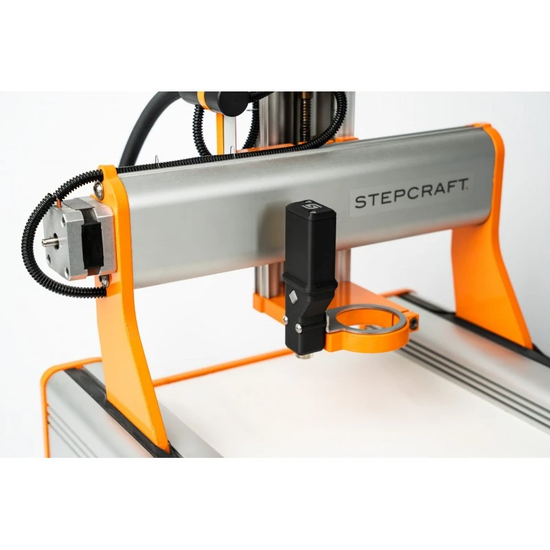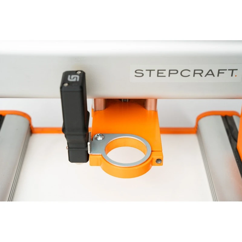 Laser krzyżowy STEPCRAFT można szybko zamontować na osi Z maszyny CNC, wykorzystując do tego celu określone punkty montażowe, odpowiednie dla danej serii D/M. Urządzenie jest gotowe do pracy natychmiast po zastosowaniu czterech baterii AAA (brak w zestawie).