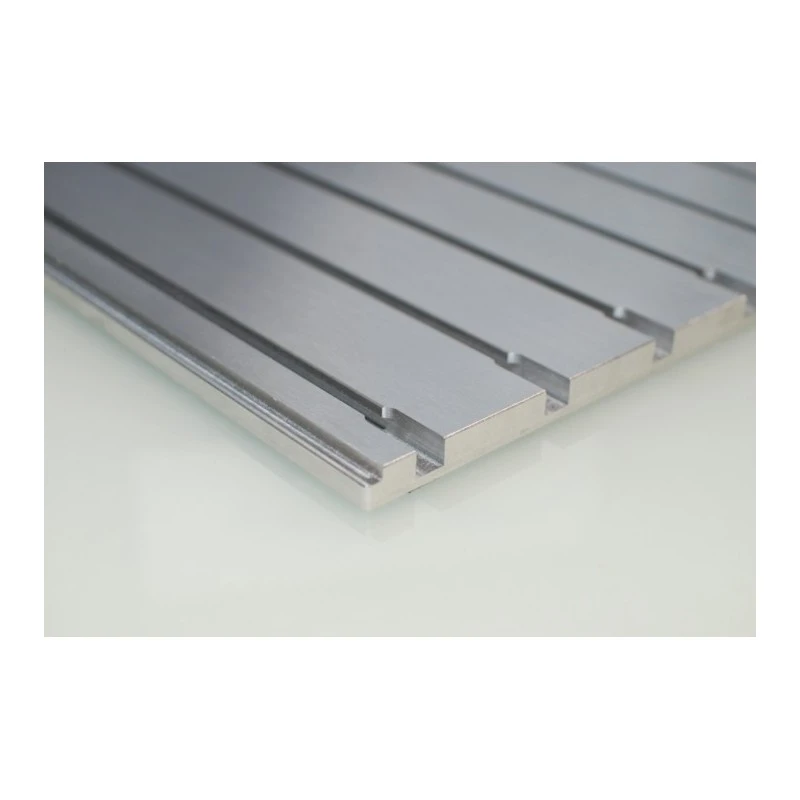 Aluminiowy stół dla maszyny STEPCRAFT serii 3! Stół teowy wykonany jest z aluminium i doskonale nadaje się do mocowania detali z różnych materiałów i o różnych rozmiarach lub akcesoriów takich jak imadło lub oś obrotowa. Możesz używać śrub M6 lub nakrętek rowkowych o szerokości 10mm. Ze względu na system szybkiej wymiany oprzyrządowania i montażu maszyny, złożenie stołu jest bardzo łatwe.