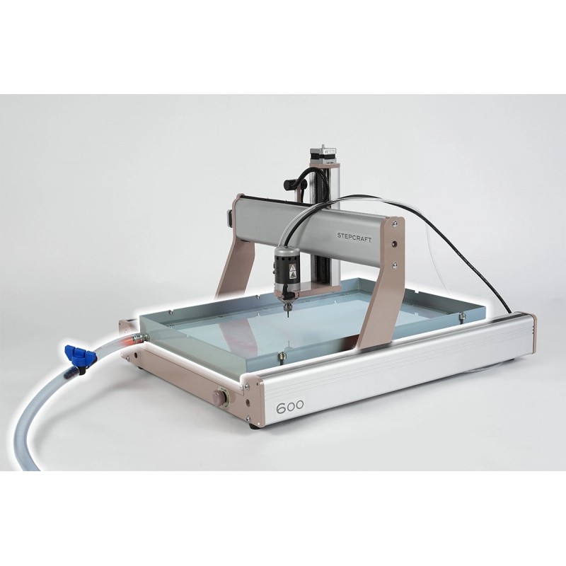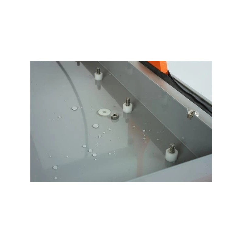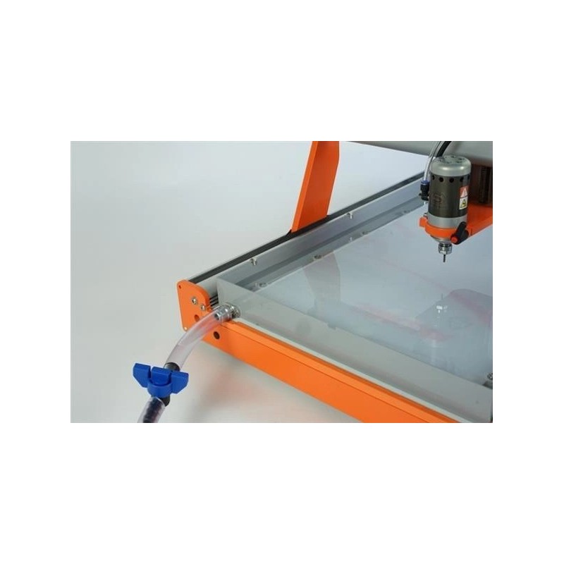 Podczas korzystania z wanny frezowej można obrabiać różne materiały pod wodą lub inne płyny. W ten sposób nie tylko osiągasz bardzo dobre chłodzenie, które jest pomocne przy cięciu pleksi, tworzywa termoplastycznego i węgla, ale także zachowanie wiórów w wannie. Płyty, które należy obrabiać, są zabezpieczone w wygodny sposób za pomocą śrub mocujących.