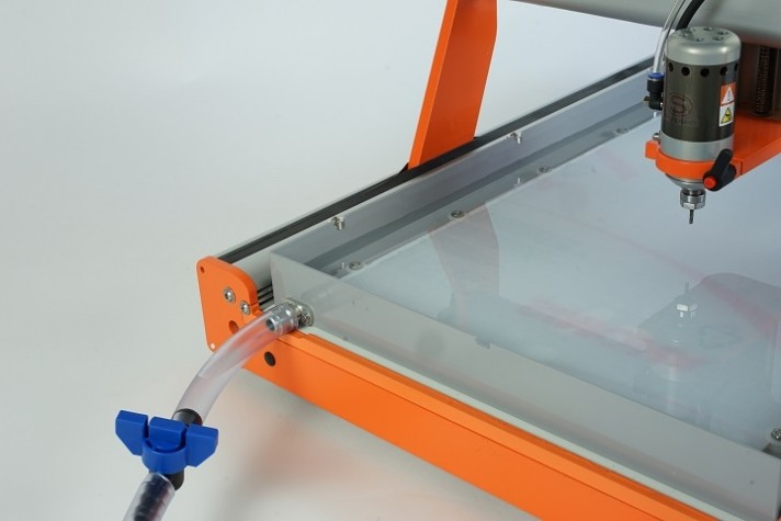 Podczas korzystania z wanny do frezowania możesz obrabiać różne materiały pod wodą lub innymi płynami. Tak więc, można nie tylko osiągnąć bardzo dobre chłodzenie, co jest pomocne przy frezowaniu pleksi, materiałów termoplastycznych czy węgla, ale także można zatrzymać powstające odpady/wióry w wannie. Co za tym idzie, żywotność frezów zostaje przedłużona. Bloki, które mają być obrabiane, mocowane są w wygodny sposób za pomocą zacisków.