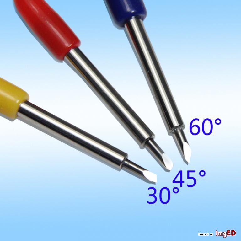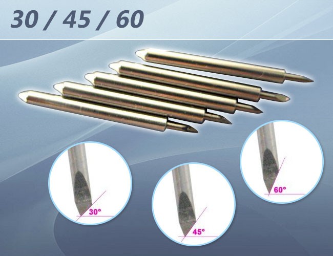 – Nóż 60° – (niebieski) – przeznaczony jest do grubych materiałów.