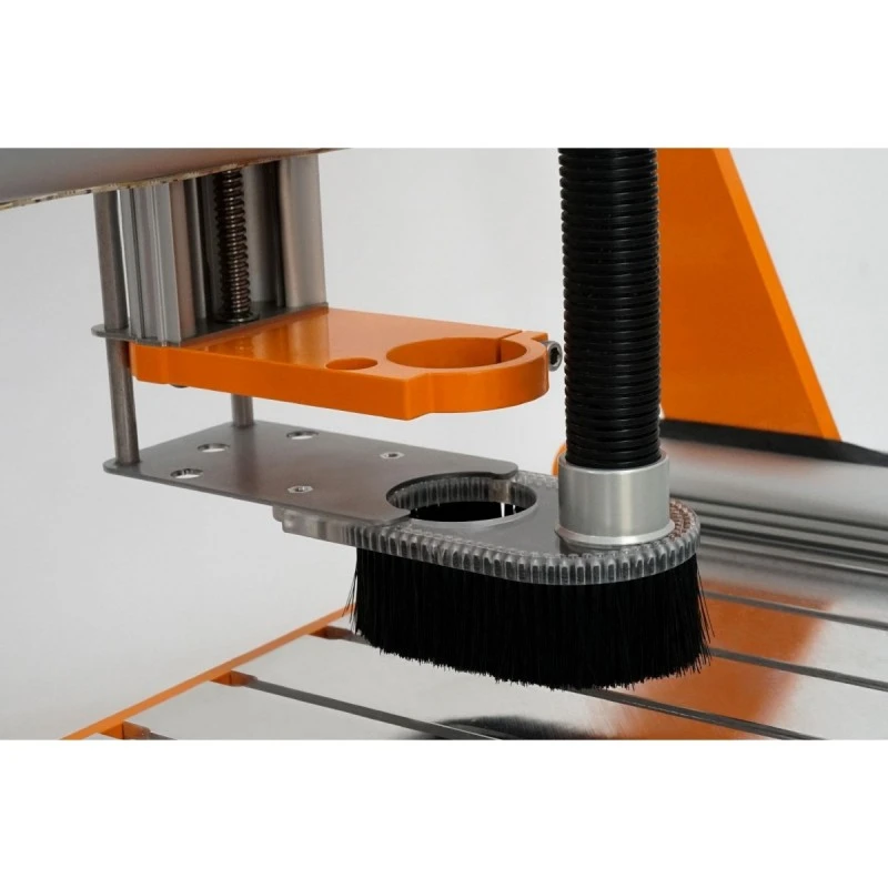 Dzięki automatycznej kompensacji wysokości 43 mm (kierunek Z) adapter odsysania dopasowuje się optymalnie do materiału obrabianego przedmiotu, a solidne szczotki dwurzędowe zapewniają bardzo dobre uszczelnienie. Prowadnica z łożyskami ślizgowymi igus® jest zintegrowana z osią Z. Dodatkowo adapter można zamocować w górnym położeniu za pomocą zamka magnetycznego podczas prac konserwacyjnych.