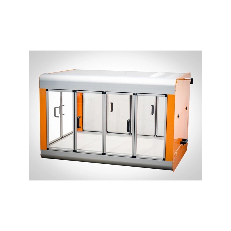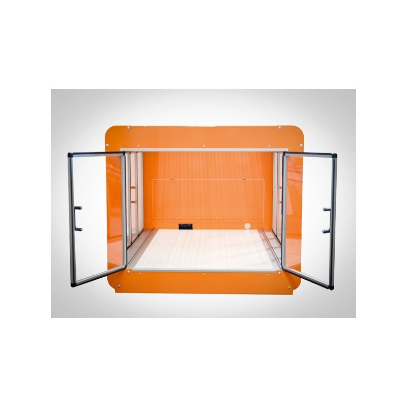 Obudowa została zaprojektowana w celu ochrony otoczenia przed hałasem i zanieczyszczeniem, podczas gdy STEPCRAFT serii D działa. Po umieszczeniu w obudowie, ploter jest dostępny z trzech stron przez drzwiczki. Dzięki zintegrowanemu łańcuchowi przeciągania kabli narzędzi, takich jak silnik frezujący lub OTK-3, mogą być kierowane na zewnątrz w schludny sposób, aby żadne kable nie zasłaniały pola widzenia.