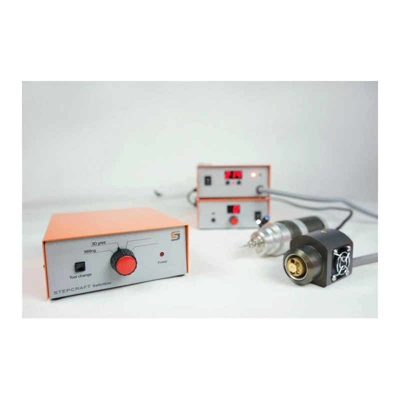 Praca z maszyną CNC staje się jeszcze bardziej wydajna podczas korzystania ze skrzynki rozdzielczej, ponieważ nie jest już wymagane czasochłonne podłączanie i odłączanie różnych urządzeń. Wystarczy zainstalować odpowiednie moduły elektroniczne w skrzynce rozdzielczej, która zapewnia miejsce na podłączenie do ośmiu narzędzi. Teraz możesz łatwo wybrać urządzenie, którego chcesz używać, np. sol. głowicy drukującej 3D lub wrzeciona HF i zacznij od razu.