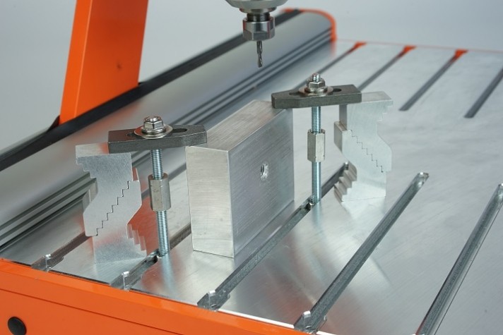 System mocujący poprawia elastyczność przy zabezpieczaniu obrabianego przedmiotu na stole teowym (T-slot) maszyny .
