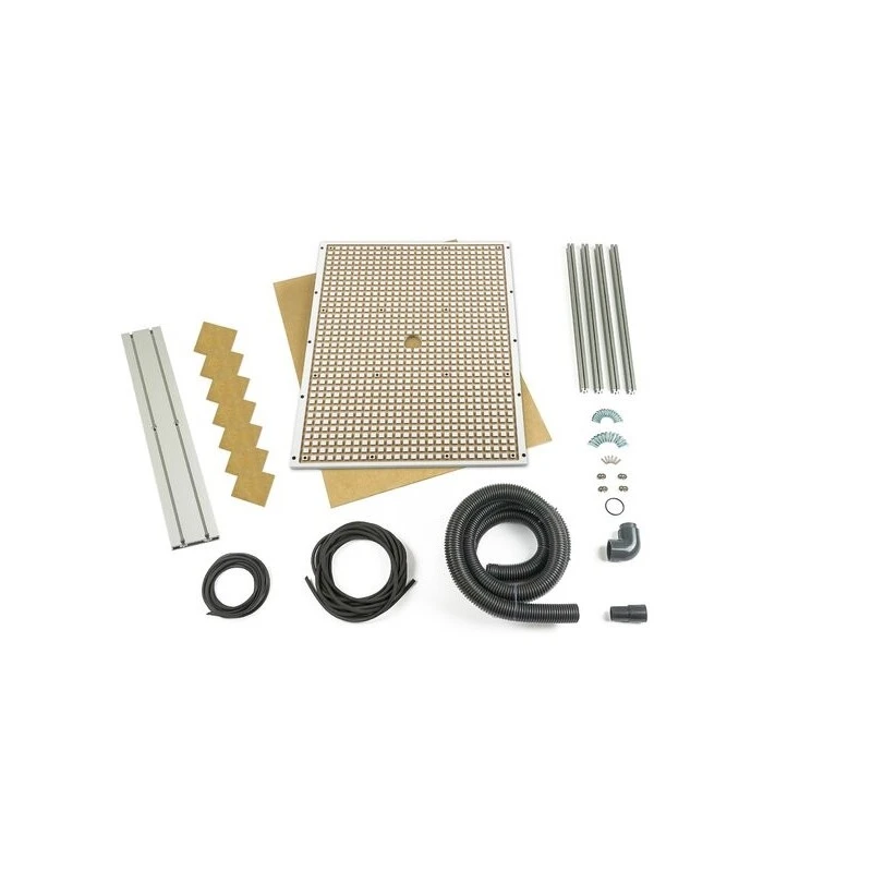 Użyj stołu podciśnieniowego M.1000 MDF, aby szybko i łatwo zamocować obrabiane przedmioty na urządzeniu STEPCRAFT M.1000. Tania alternatywa dla stołu podciśnieniowego M.1000 PE jest po prostu wbudowana w maszynę zamiast istniejącego stołu maszynowego. Ostatni element stołu pozostaje w maszynie lub może być zastąpiony przez magazyn narzędzi M.1000 z funkcją podnoszenia pneumatycznego. W celu wytworzenia niezbędnego podciśnienia stół podciśnieniowy musi być podłączony do odkurzacza przemysłowego (chłodzonego powietrzem) lub sprężarki bocznokanałowej. Powstające podciśnienie ściąga obrabiany przedmiot na stół maszyny i mocno go mocuje.