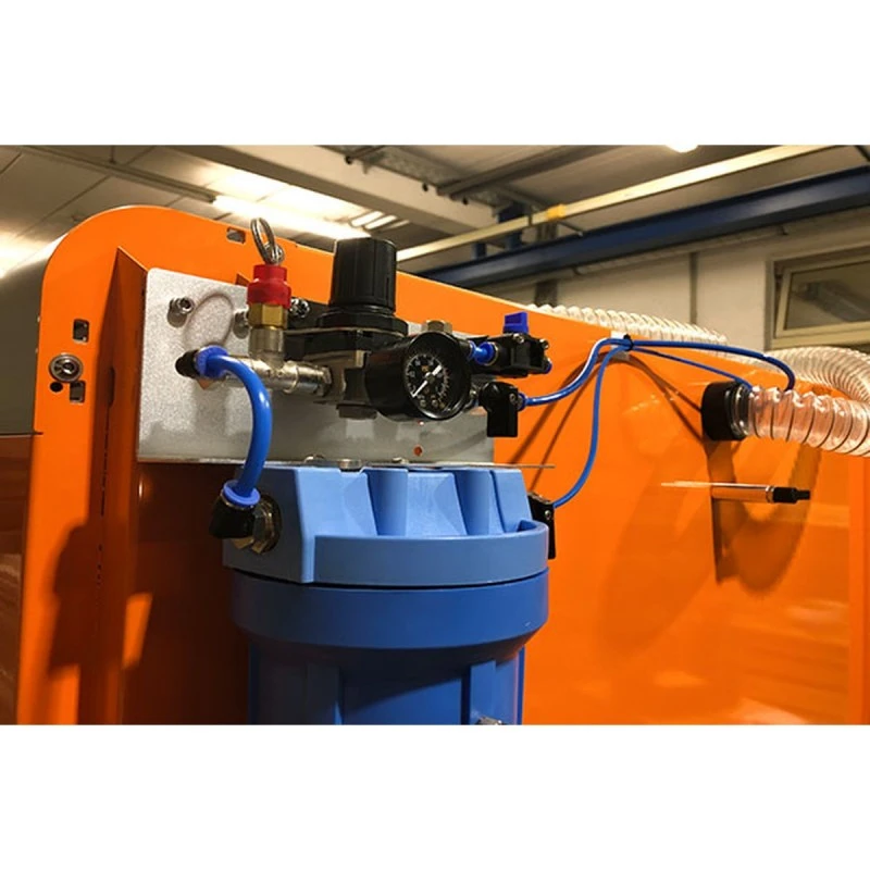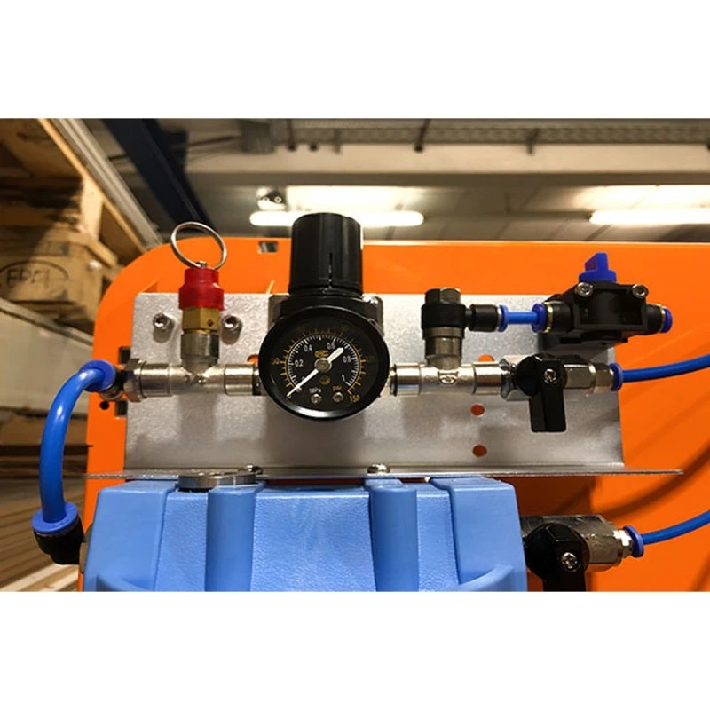 Działa przy ciśnieniu powietrza 0,3-1,5 bara, w zależności od lepkości płynu chłodzącego
