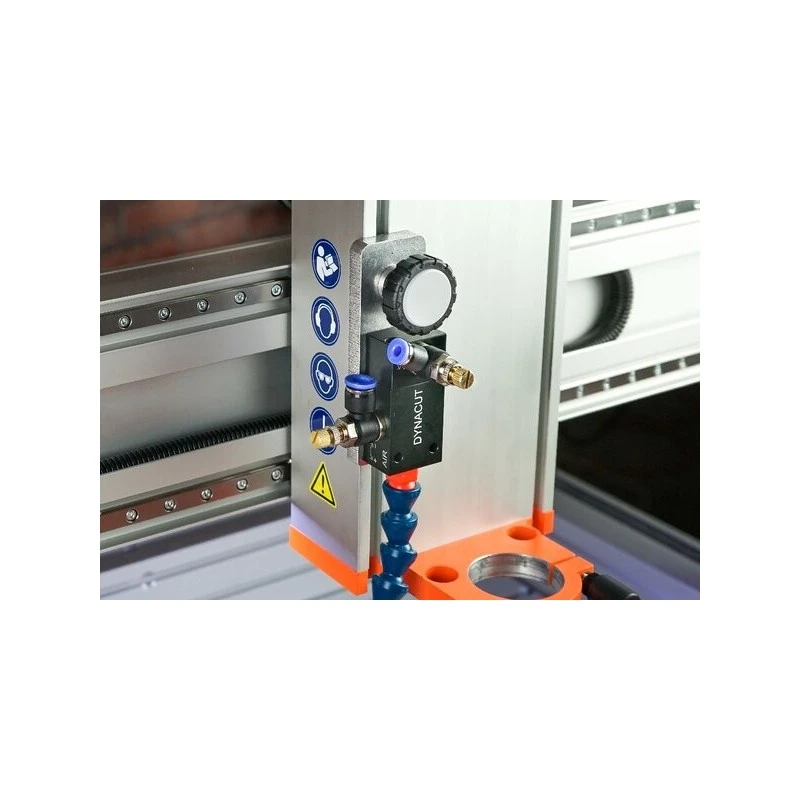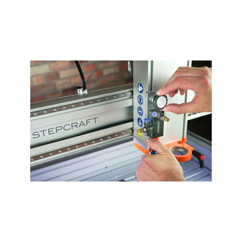 Za pomocą zestawu montażowego możesz wygodnie zamocować głowicę natryskową systemu smarowania w rowkach T osi Z w urządzeniu STEPCRAFT serii M. Dzięki zintegrowanej szybkiej regulacji głowicę natryskową można łatwo regulować na wysokość, dzięki czemu można ją optymalnie ustawić.