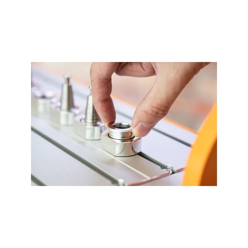 Adapter SK15/SK10 to narzędzie umożliwiające kompatybilne wykorzystanie magazynu narzędzi z funkcją pneumatycznego podnoszenia w maszynach STEPCRAFT serii M.500, M.700 oraz M.1000. Dzięki adapterowi można używać wrzeciona HF w połączeniu z automatycznym wymiennikiem narzędzi (AWN).