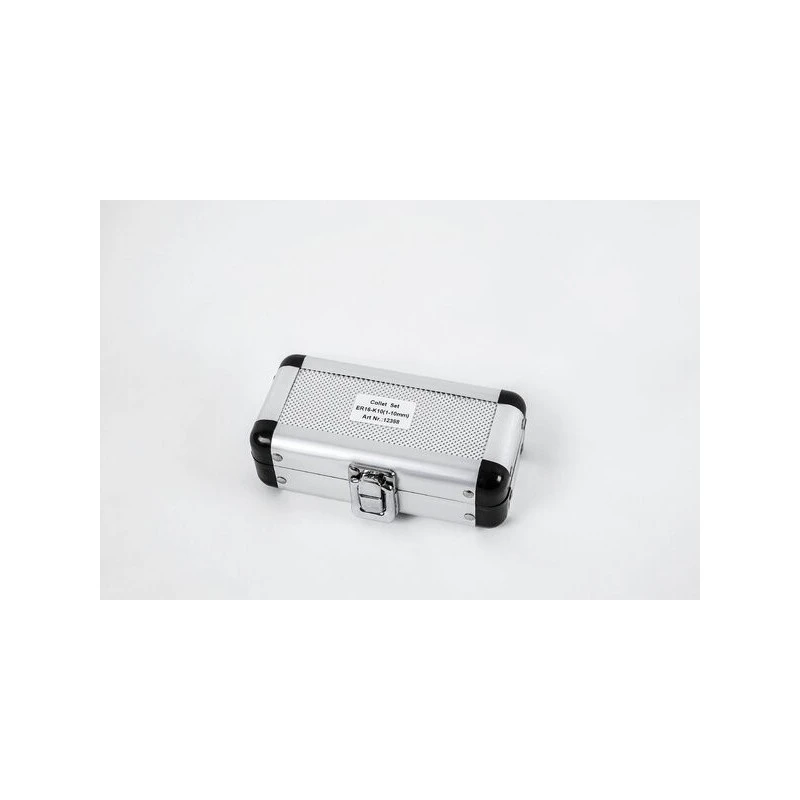 Zestaw tulei zaciskowych ER16 jest dostarczany w zgrabnej aluminiowej obudowie, zawiera 12 tulei zaciskowych ER16. Zestaw tulei zaciskowych ER16 pasuje do uchwytów zaciskowych ER16 wszystkich producentów, m.in. AMB FME-P.