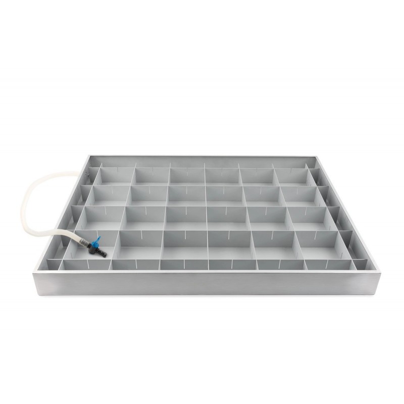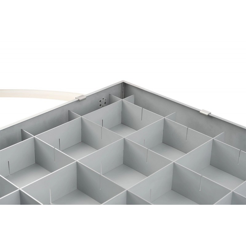 Wanna jest przymocowana do stołu maszyny serii M za pomocą zestawu montażowego. Dzięki macie izolacyjnej oraz izolacji zawartej w mocowaniu, kąpiel wodna jest odseparowana od uziemienia maszyny CNC. Dzięki modułowo zaprojektowanym blaszanym listwom powierzchnia nośna może być montowana zgodnie z Twoimi potrzebami.
