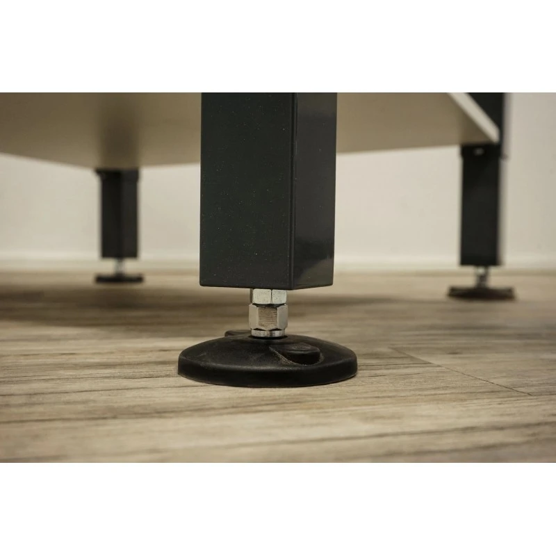 Dzięki nóżkom o regulowanej wysokości można łatwo zniwelować ewentualne nierówności podłoża. Ponadto dwie półki oferują dużo miejsca do przechowywania narzędzi i akcesoriów.