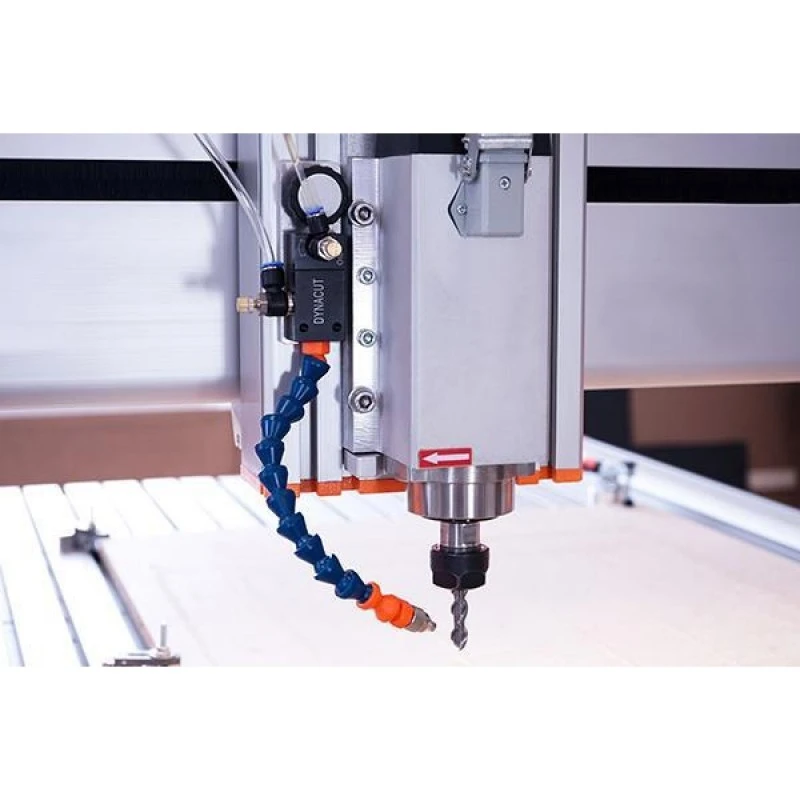 Za pomocą zestawu montażowego można wygodnie zamocować głowicę natryskową układu smarowania w rowkach T osi Z w serii STEPCRAFT Q. Dzięki zintegrowanej szybkiej regulacji głowicę natryskową można łatwo regulować na wysokość, dzięki czemu można ją optymalnie ustawić.